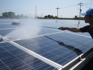 塩害地域にて鳥糞や塩による汚れがひどいためパネル洗浄も同時に実施しております。